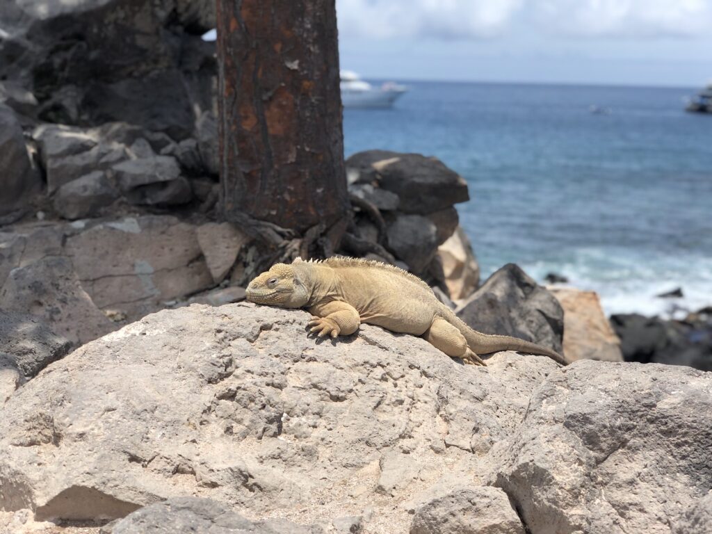 Na o vėliau tenka pažindintis su trimis skirtingų iguanų rūšimis, gyvuojančiomis tik šiose salose. Unikaliausios jų – jūrinės iguanos, kurios prisitaikė prie gyvenimo Galapaguose taip, kad išmoko plaukti, misti jūros žole, o vėliau, išlipus į krantą besišildydamos ant saulės pro nosis išpurškia susikaupusią jūros druską. Prisipažinsiu, prieš kelionę mačiau ne vieną dokumentinį filmą apie jų gyvenimą ir net įsivaizduoti negalėjau visa tai stebėti iš taip arti! Jaučiausi taip, tarsi būčiau papuolusi į dokumentinį filmą iš vidaus :O