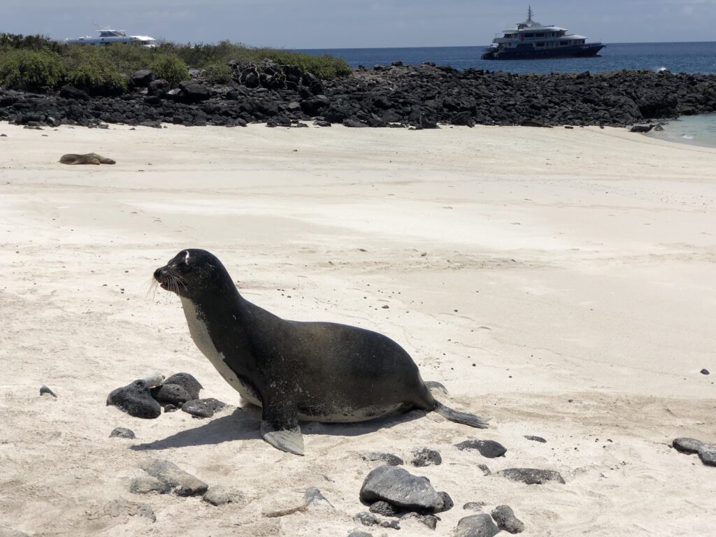 Kitą dieną skyrėme pažinčiai su dar 2 salomis: Santa Fe ir Plazas. Abi labai skirtingos, o tuo pačiu skyrėsi ir jau nuo mūsų lankytų. Pirmojoje išsilaipinome tiesiai į jūrų liūčių paplūdimį, kur vienas patinas prižiūri ir saugo nuo kitų patinų visas savo moteris ir jų kūdikius J Vaikštai tarp šių gyvūnų ir supranti – tu jiems visiškai neįdomus, tačiau tau jie – be galo J