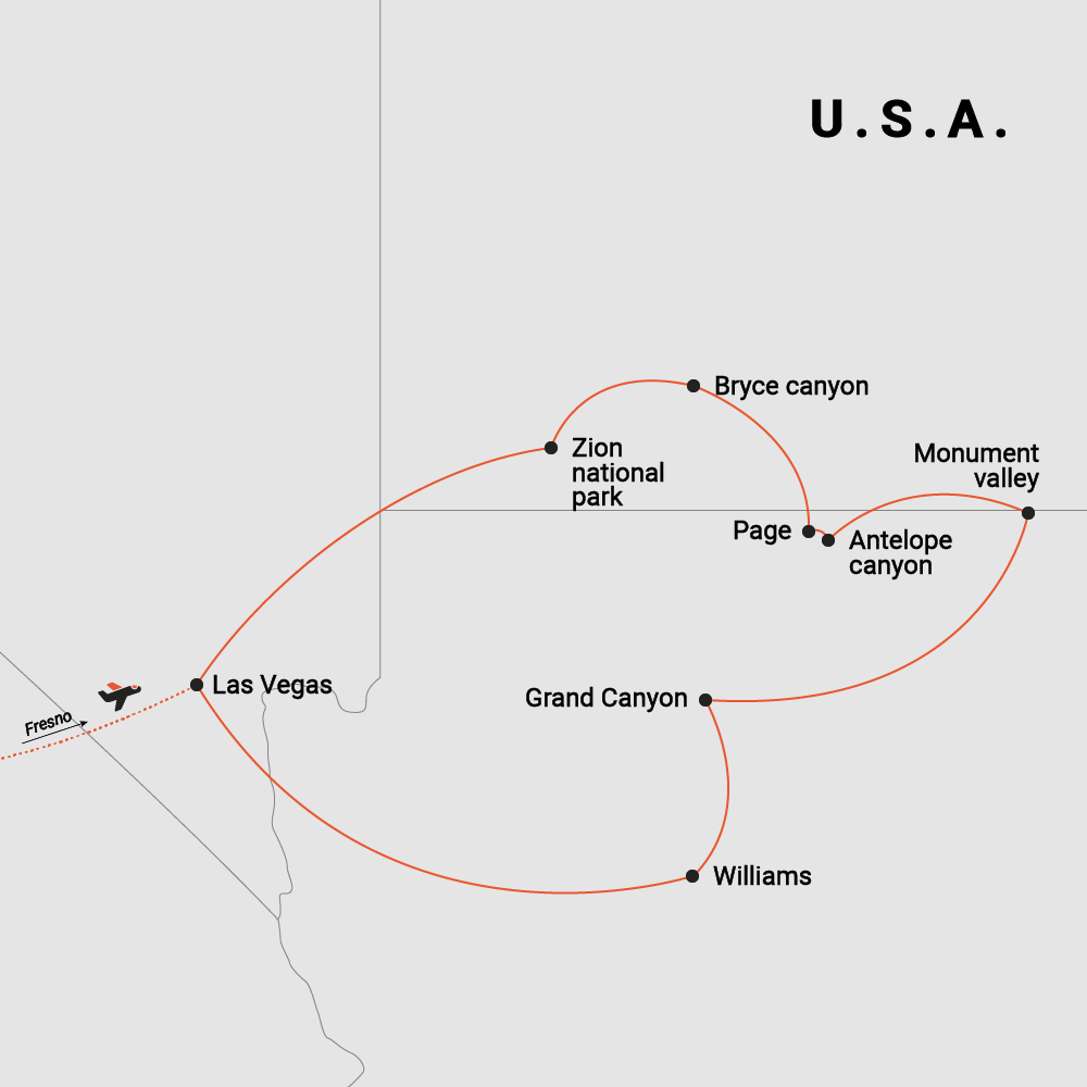 Vakarinę Jungtinių Amerikos Valstijų dalį galima drąsiai vadinti gamtos mėgėjų ir fotografų rojumi – lankydami čia įsikūrusius įspūdingiausius nacionalinius parkus savo akimis pamatysite, kokius stebuklus gali sukurti gamta ir laikas. Ši kelionė sukurta tikriems gamtos mylėtojams – tiems, kurie nori pažinti šią šalį per stulbinančius ir dramatiškai besikeičiančius jos kraštovaizdžius. Taip pat važiuosite gražiausiais JAV keliais, trumpam užsuksite į kalvotąjį San Franciską ir šviesų miestu vadinamą Las Vegasą. Nuostabi ir įvairi gamta, įkvepianti fotografus, alpinistus ir poetus, bei du savaip žavingi miestai: visa tai – vienoje kelionėje po legendinius JAV Vakarus.