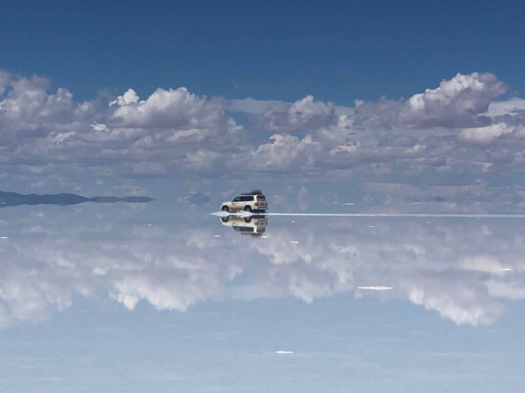 Tai viena labiausiai lankomų vietų Bolivijoje – didžiausia pasaulyje druskos dykuma. Sausuoju metų laiku akys aprėpia begalinę baltą lygumą, o lietaus sezonu paviršius pavirsta į milžinišką veidrodį, atspindintį dangų. Keliautojai čia lankosi druskos viešbučiuose ir stebi flamingus prie spalvotų lagūnų.